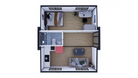 - Option D: 1 bedroom, 1 living room, 1 kitchen, 1 bathroom
