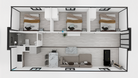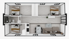 The CHOMEX 40' Expandable Container Home: High Roof Edition brings you the comfort of a traditional home with the efficiency of a modern modular build. Featuring 3 full bedrooms, a spacious living area, a full kitchen, and a modern bathroom. All under soaring 9'6" ceilings.